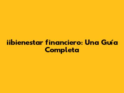 Iibienestar Financiero: Una Guía Completa