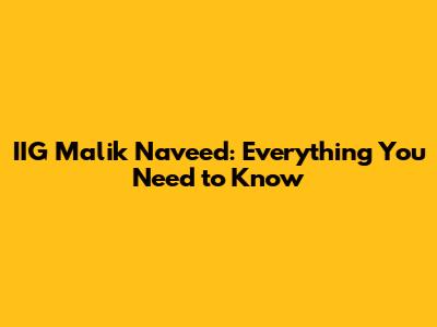 IIG Malik Naveed: Everything You Need To Know