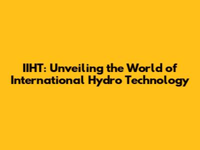 IIHT: Navigating The Waters Of International Hydro Technology