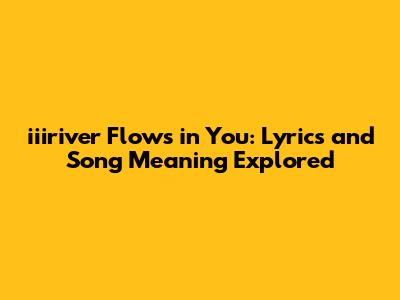 Hey music lovers! Ever wondered about the depth and meaning behind the lyrics of iiiriver's "Flows in You"? Well, you've come to the right place. Let's dive deep into this captivating song, dissecting its lyrics and uncovering the emotions it evokes. "Flows in You" isn't just a song; it's an experience, a journey through sound and sentiment that resonates with many on a profound level. Whether you're a long-time fan or just discovering iiiriver, understanding the nuances of this track can truly enhance your appreciation for their artistry.
