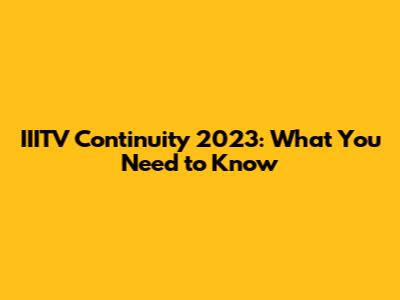 IIITV Continuity 2023: What You Need To Know