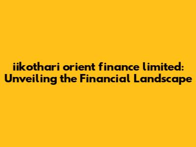 Iikothari Orient Finance Limited: An In-Depth Analysis