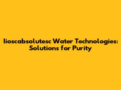 Iioscabsolutesc Water Technologies: Solutions For Purity