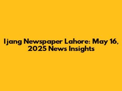 Ijang Newspaper Lahore: May 16, 2025 News Insights