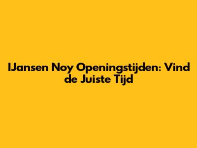 IJansen Noy Openingstijden: Vind De Juiste Tijd