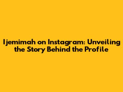 Ijemimah On Instagram: Unveiling The Story Behind The Profile