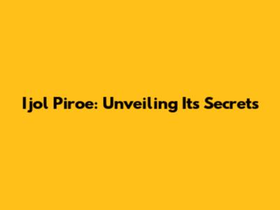 Ijol Piroe: A Deep Dive Into Its Uses, Benefits, And More