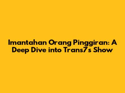 Hey guys! Let's talk about something interesting – the show Imantahan Orang Pinggiran on Trans7. If you're into stories about real people and their struggles, then you've probably stumbled upon this program. It's a show that dives deep into the lives of people living on the fringes of society, offering a glimpse into their daily challenges, triumphs, and everything in between. In this article, we'll unpack what makes Imantahan Orang Pinggiran tick, what makes it stand out, and why it's worth your time.