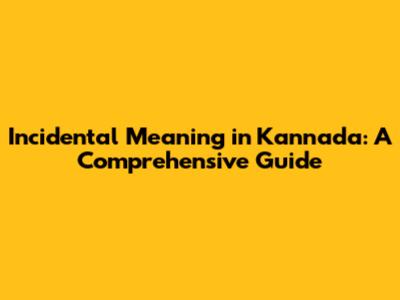 Incidental Meaning In Kannada: A Comprehensive Guide