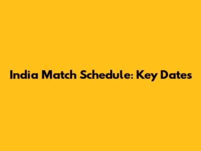 India Match Schedule: Key Dates