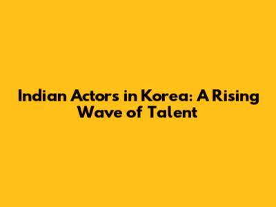 Notable Indian Actors Making a Mark in Korea
