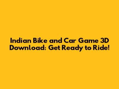 Indian Bike And Car Game 3D Download: Get Ready To Ride!
