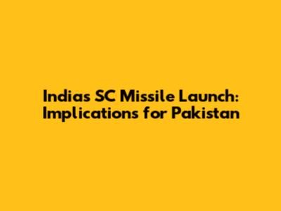 India's SC Missile Launch: Implications For Pakistan