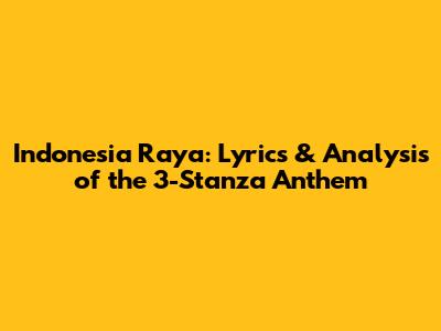 Hey everyone! Today, we're diving deep into Indonesia Raya, the national anthem of Indonesia. But we're not just stopping at the first verse; we're exploring the complete, 3-stanza version. It's a powerful song with a rich history and a message that still resonates strongly today. Let's break down the lyrics, the meaning, and the significance of each stanza. Get ready to learn something new and appreciate the anthem in a whole new light. We'll explore the history, the context, and the emotions behind this iconic piece of Indonesian culture. So, grab your coffee, sit back, and let's get started!