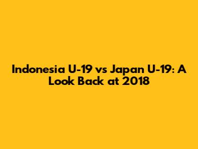 Indonesia U-19 Vs Japan U-19: A Look Back At 2018