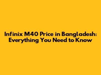 Infinix M40 Price In Bangladesh: Specs And Review