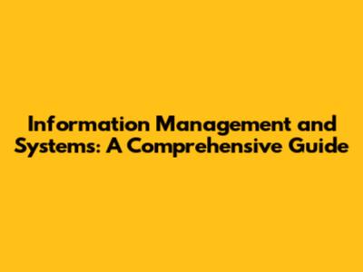 Information Management And Systems: A Comprehensive Guide
