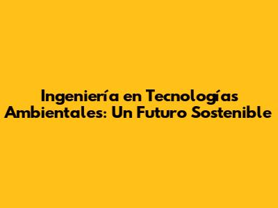 Ingeniería En Tecnologías Ambientales: Un Futuro Sostenible