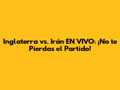 Inglaterra Vs. Irán EN VIVO: Sigue El Partido Aquí
