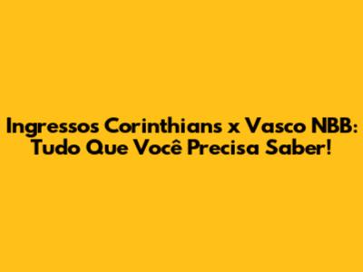 Ingressos Corinthians X Vasco NBB: Guia Completo!