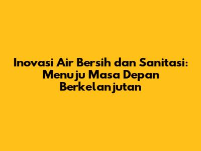 Inovasi Air Bersih & Sanitasi: Solusi Masa Depan