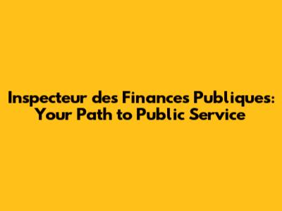 Inspecteur Des Finances Publiques: Your Path To Public Service