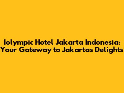 Hey there, travel enthusiasts! Ready to dive into the vibrant heart of Jakarta? Let's talk about the Iolympic Hotel Jakarta Indonesia, a place that could be your perfect home base for exploring this amazing city. Finding the right hotel can make or break your trip, right? Well, let's break down everything you need to know about the Iolympic Hotel Jakarta Indonesia, from its location and amenities to the overall experience. Buckle up, because we're about to embark on a virtual tour of this potentially awesome stay!