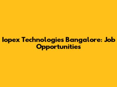 Iopex Technologies Bangalore: Job Opportunities