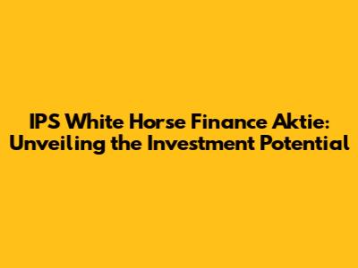 Hey finance enthusiasts! Let's dive deep into the world of IPS White Horse Finance Aktie. If you're anything like me, you're always on the lookout for exciting investment opportunities, and this one has definitely caught my eye. In this article, we'll explore everything you need to know about IPS White Horse Finance Aktie – from what it is, to how it works, and whether it could be a smart addition to your portfolio. So, buckle up, grab your favorite beverage, and let's get started!