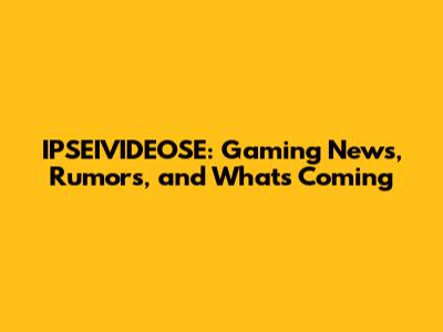 IPSEIVIDEOSE: Gaming News, Rumors, And What's Coming
