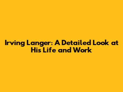 Irving Langer: A Detailed Look At His Life And Work