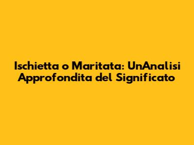 Ischietta O Maritata: Scopri Il Significato E Le Differenze!
