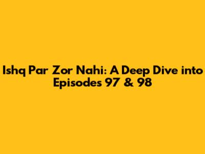 Hey guys! Let's dive right into the captivating world of Ishq Par Zor Nahi! We're talking about episodes 97 and 98 today. These episodes were packed with drama, romance, and those unexpected twists that keep us all hooked. Buckle up, because we're about to unpack everything that went down, from the emotional highs to the nail-biting lows. Get ready for a recap that'll have you reliving every moment! Remember to check out where you can watch the episode.