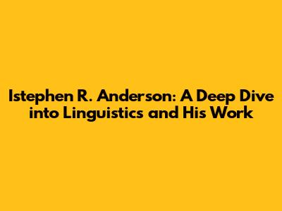Hey guys! Let's talk about Istephen R. Anderson, a super influential figure in the world of linguistics. If you're into how language works, its structure, and how we use it, you've probably stumbled across his name. This article is your guide to understanding who he is, what he's contributed, and why his work still matters today. We're going to break down his key ideas, making it easy to grasp even if you're not a linguistics guru. So, buckle up; we're diving into the fascinating world of Professor Anderson!