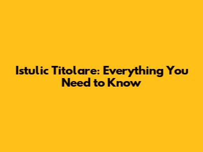 Istulic Titolare: Everything You Need To Know