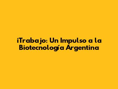 ITrabajo: Impulsando La Biotecnología En Argentina