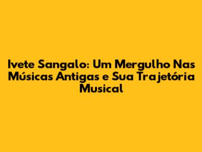Ivete Sangalo: Um Mergulho Nas Músicas Antigas E Sua Trajetória Musical