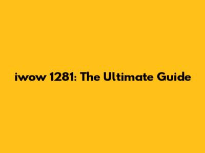 Iwow 1281: The Ultimate Guide
