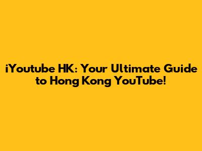 IYoutube HK: Your Ultimate Guide To Hong Kong YouTube!