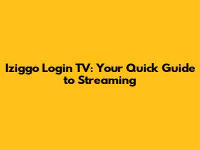 Iziggo Login TV: Your Quick Guide To Streaming
