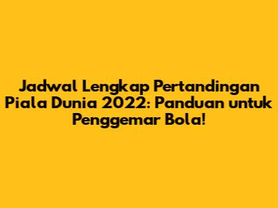 Guys, kalau kalian penggila bola, pasti sudah gak sabar kan menantikan Piala Dunia 2022? Ajang sepak bola paling bergengsi di dunia ini selalu berhasil menyedot perhatian jutaan pasang mata di seluruh dunia. Nah, agar kalian tidak ketinggalan momen seru dan pertandingan-pertandingan menarik, saya akan memberikan panduan lengkap mengenai jadwal pertandingan Piala Dunia 2022. Mari kita bedah bersama-sama!