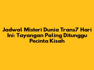 Jadwal Misteri Dunia Trans7 Hari Ini