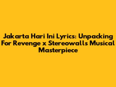 Hey music lovers! Ever gotten lost in the vibes of a song and felt like it perfectly captured a moment or a feeling? Well, if you're a fan of Indonesian music, chances are you've vibed to "Jakarta Hari Ini" by For Revenge featuring Stereowall. This track isn't just a song; it's an experience. Let's dive deep into the lyrics of "Jakarta Hari Ini", dissecting the emotions, the artistry, and the overall impact of this musical gem. We'll explore the song's themes, its cultural relevance, and why it has resonated so deeply with listeners, especially the young generation. Get ready to have your eardrums blown as we analyze the music as well.