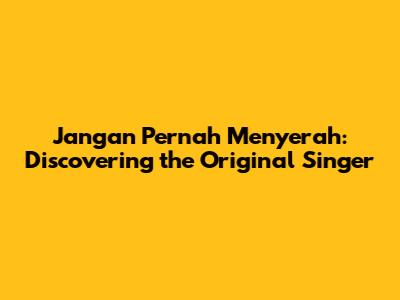 Hey guys! Ever found yourself humming along to a song, only to wonder who the original artist was? Today, we're diving deep into the story behind one of those tunes: "Jangan Pernah Menyerah." This phrase, which translates to "Never Give Up," is not just a powerful mantra but also the title of an incredibly inspiring song. Many artists have covered it over the years, each bringing their unique flavor. But who was the very first to sing it and give it life?
