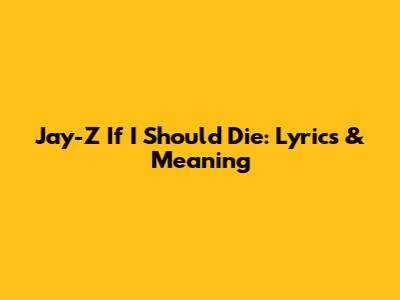 Jay-Z 'If I Should Die': Lyrics & Meaning