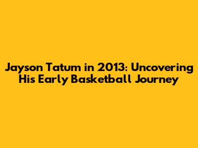 Jayson Tatum In 2013: Uncovering His Early Basketball Journey