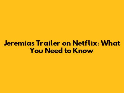 Jeremias Trailer On Netflix: What You Need To Know