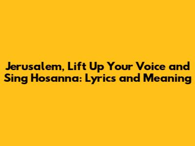 Okay, guys, let's break down the lyrics of "Jerusalem, Lift Up Your Voice and Sing Hosanna!" line by line. Understanding each verse and its meaning can really amplify the impact of the song. We'll look at the historical and biblical context to truly grasp the depth of this hymn. It's like unlocking a secret treasure of faith and devotion!