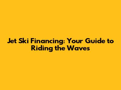 Jet Ski Financing: Your Guide To Riding The Waves