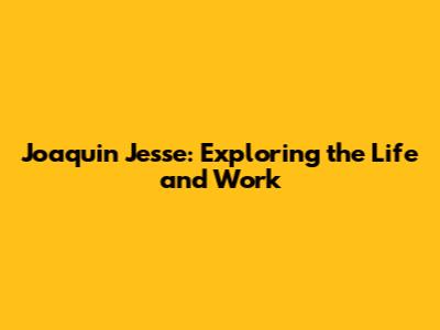 Joaquin Jesse: Exploring The Life And Work